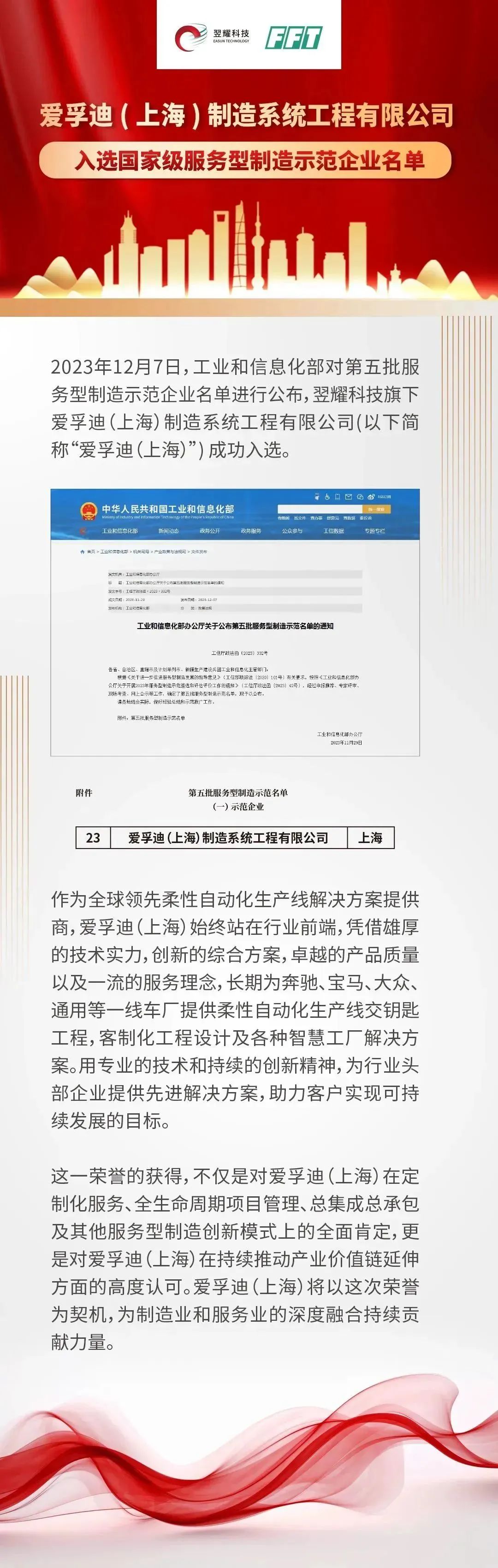 爱孚迪(上海)当选国家级服务型制造示范企业名单