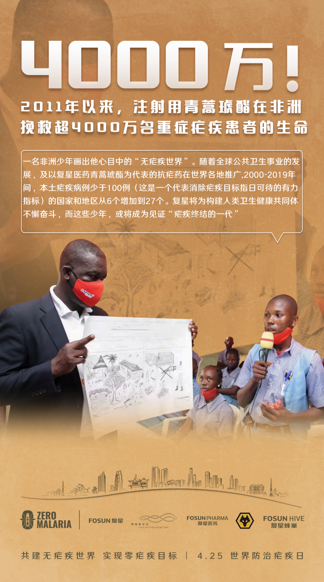 2021ÄêµÄÊÀ½ç·ÀÖÎű¼²ÈÕǰºó£¬Ó¢¹úÇò³¡ÉϵÄÓ¢³¬ÀǶӺôÓõÇòÃÔЯÊÖÖÕ½áű¼²£¬Ô¶ÔÚ·ÇÖ޵ĺ¢×ÓÃÇÓô¿ÕæµÄ±Ê´¥Ãè»æ³öÎÞű¼²ÊÀ½ç£¬ÊÀ½ç¸÷µØµØ±êµãÁÁ¿¹Å±¼²±êÓµãµãµÆ¹â»ã¾Û£¬µØÓòËäÔ¶£¬ÐÄÔÚһͬ¡£½«À´£¬¸´Ðǽ«¼ÌÐøÏòÈ«ÇòÒ½ÁƵÚÒ»Ïß±£ËÍÓÅÖʲúÆ·£¬ÎªÉúËÀÏßÉϵϼÕßËÍÈ¥ÉúÃüµÄÊØ»¤£¬Îª¡°Ð¯ÊÖ¹²½¨ÎÞű¼²ÊÀ½ç¡±µÄÃÀºÃÔ¸¾°¶ø³ÖÐø·Ü¶·£¬Îª¹¹½¨ÈËÀàÎÀÉú½¡¿µ¹²Í¬ÌåÌṩÓÐÁ¦Ö§³Å¡£