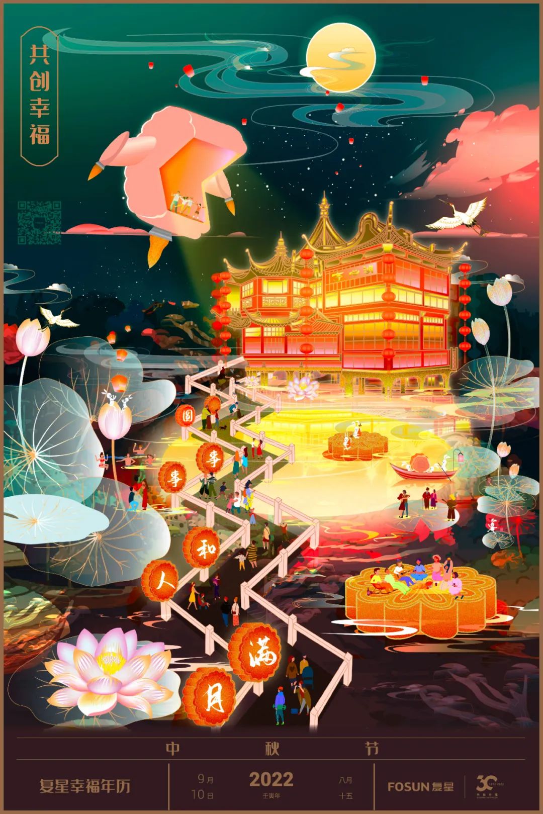 时值中秋,“复星幸福年历”借此启航,一期一会,带领大家感知复星式的幸福场景。世界很大,幸福却可以很具象。一轮圆月、家人同游。最美的月亮,和爱的人共赏。这大概就是幸福的容貌。