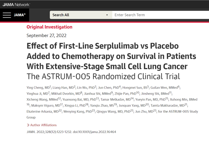 ASTRUM-005ÑÐÌÖÊǸ´ºêººÁØ×ÔÖ÷Ñз¢µÄ¿¹PD-1µ¥¿¹HÒ© ººË¹×´®£¨Ë¹Â³Àûµ¥¿¹£©ÁªºÏ»¯ÁÆÒ»ÏßÖÎÁƹ㷺ÆÚСϸ°û·Î°©£¨ES-SCLC£©µÄ¢óÆÚÁÙ´²ÑÐÌÖ£¬2022ÄêASCOÄê»á³ÌÓ±½ÌÊÚ³õ´Î±¨¸æ½á¹ûºó£¬ÈÇÆðÁËÈ«ÇòͬÐеĹ㷺¹Ø×¢¡£¶ø½ñÔٶȵÇÉϹú¼Ê¶¥¼¶Ñ§ÊõÎę̀£¬±íÏÖÁ˹ú¼ÊѧÊõ½çµÄ¸ß¶ÈÈϿɣ¬ÕÃÏÔ³öÖйúÑÐÌÖÕßµÄÖǻۻ¯ºÍÉúÎïÒ½Ò©ÁìÓò¹ú¼ÊÒ»Á÷µÄ×ÔÖ÷´´ÐÂʵÁ¦ºÍÁÙ´²ÔËÓª²ÅÄÜ¡£