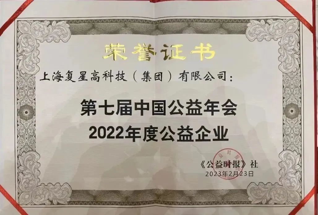 相关阅读:复星获评第七届中国公益年会“年度公益企业”