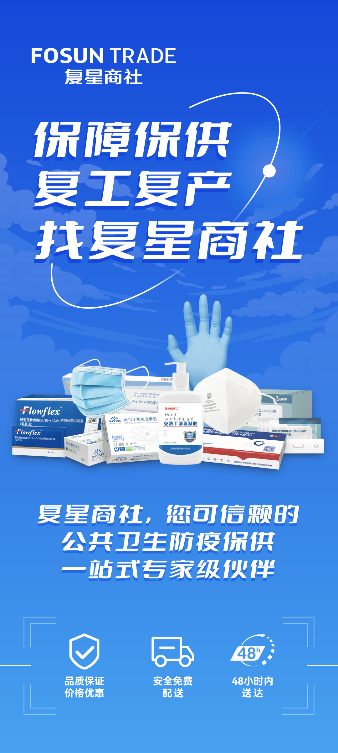 ▲复星商社提供复工复产复市防疫物资“一站式”保供方案。