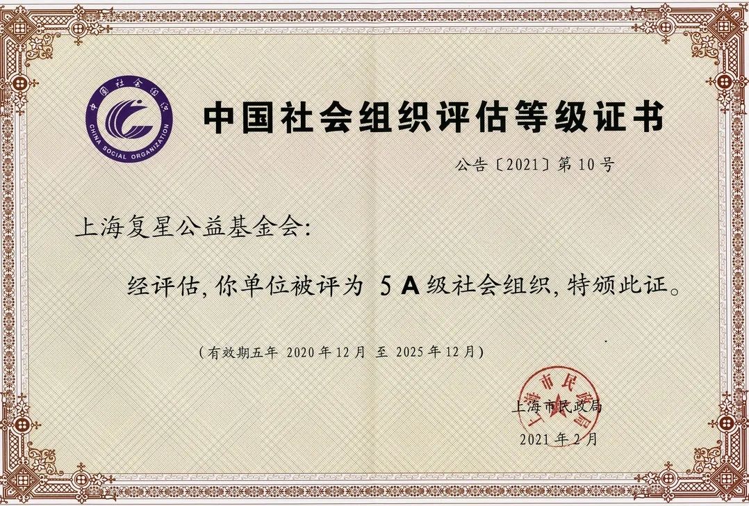 ÉϺ£¸´Ðǹ«Òæ»ù½ð»á»ñÆÀ¡°5A¼¶Éç»á×éÖ¯¡±