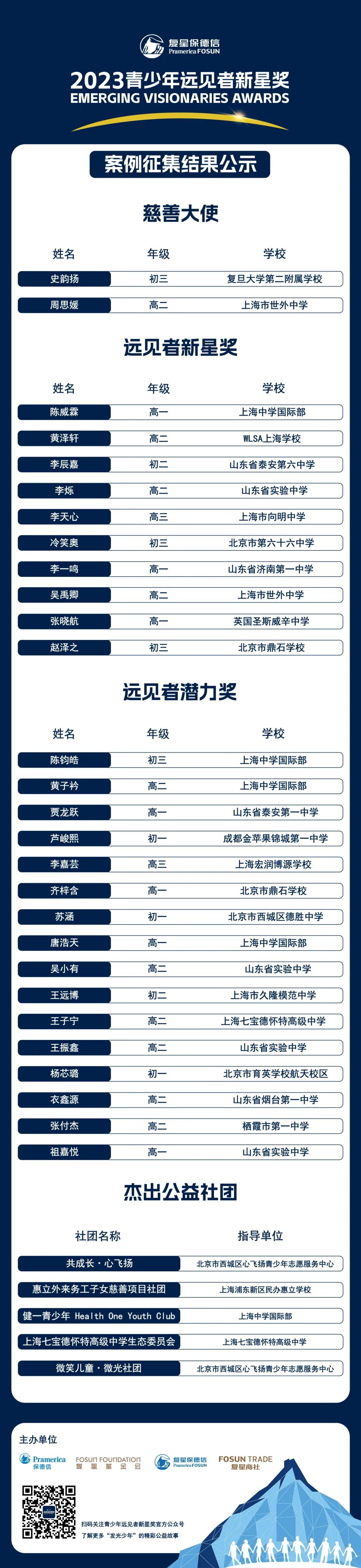 ½ñÄ꣬ÇàÉÙÄêÉçÇøÖ¾Ô¸½±½ú¼¶ÎªÇàÉÙÄêÔ¶¼ûÕßÐÂÐǽ±¡£ÕâÊǽú¼¶ºóµÄ³õ´Î·å»áÓë°ä½±ÒÇʽ£¬¹²ÊÕµ½À´×ÔÈ«¹ú163ËùѧУµÄ457·Ý¿ÒÇ󣬯ÀÑ¡³ö2Ãû¡°´ÈÉÆ´óʹ¡±¡¢10Ãû¡°Ô¶¼ûÕßÐÂÐǽ±¡±¡¢16Ãû¡°Ô¶¼ûÕßDZÁ¦½±¡±ºÍ5¸ö¡°½Ü³ö¹«ÒæÉçÍÅ¡±£¬ÆäÖÐ2Ãû¡°´ÈÉÆ´óʹ¡±ÓÚ4Ô¸°ÃÀ¹ú²ÎÓëÇàÉÙÄêÔ¶¼ûÕßÐÂÐǽ±¹ú¼Ê·å»á¡£